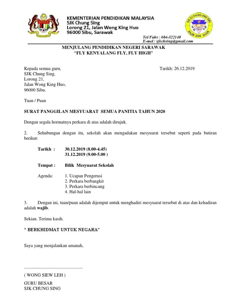 Contoh surat panggilan mesyuarat (2). Contoh surat panggilan mesyuarat kurikulum 1. Contoh surat panggilan mesyuarat kerajaan contoh surat. Kepada, semua guru dan ahli persatuan bahasa melayu sk kangka tebrau 2019.